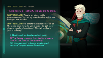 - I walked right by Ian in my second playthrough... it might be nice to have a trigger that makes it so the player has to talk to Ian (him going "hey!!"and pulling you into dialogue would be funny)? Or is it an option to talk to Ian or Hanh first because I notice you can't talk to the captain right away (until you talk to the others)